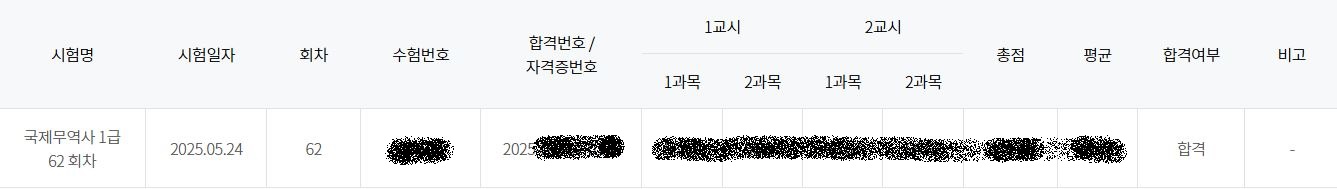 이렇게 공부하여 국제무역사1급 시험도 합격하였고 5월에 무역영어1급 국제무역사1급 자격증을 한 번에 얻게 되었습니다.