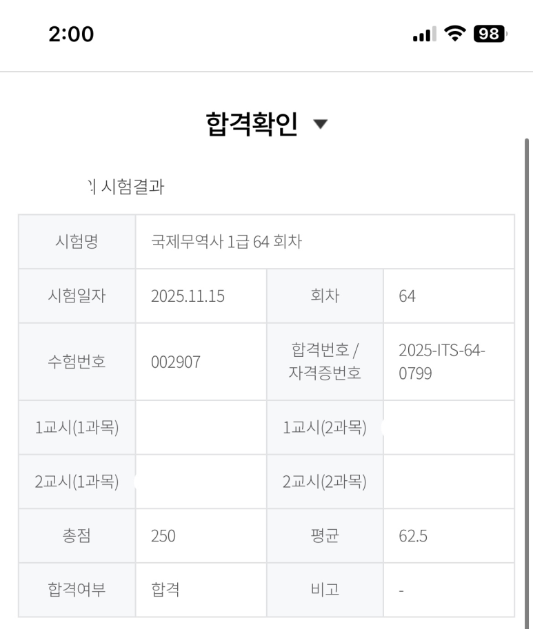따끈따끈한 2025년 11월 15일 64회 국제무역사 시헙 합격 후기를 들고 왔습니다.