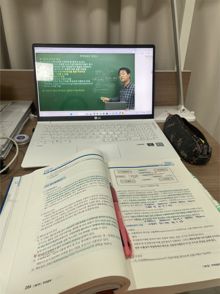 L/C거래 해본적 없음, 무역실무랑 대외무역법, 관세법, 무역 결제등 그냥 노베라고 생각하면 될 정도로 외워야될게 너무 많았음..