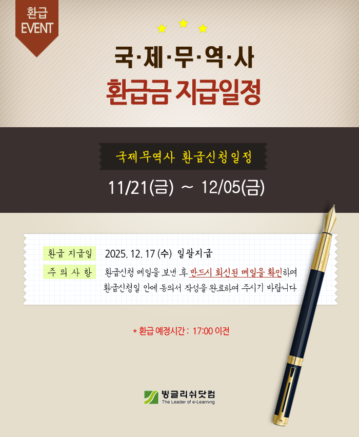• [환급필독] 제64회 국제무역사 환급반 지급 일정